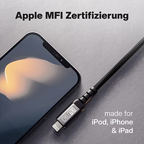 CABLETEX Cavo da USB C a Lightning, 200 cm, cavo di ricarica in nylon intrecciato per iPhone 8 e successivi, certificazione MFi, Pro/max/X/XS/XR/XS Max/8/8 Plus e per iPhone, iPod, iPad e Airpods