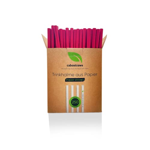 CABOSTRAWS Cannucce di carta ecologiche, colore rosso, cannucce usa e getta per feste, matrimoni e compleanni, cannucce biodegradabili, 150 x 8 mm, 250 pezzi
