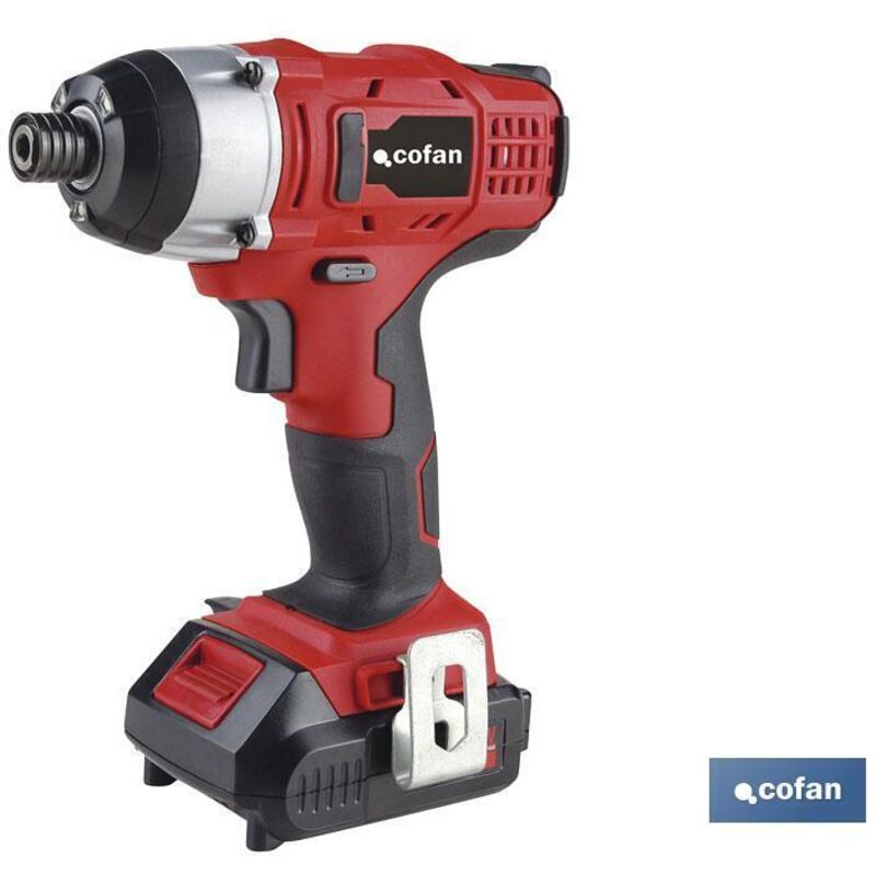 Cacciavite a percussione da 1/4 con batteria agli ioni di litio. Consiste nel controllo della velocità variabile 0-2000 giri/min. e selettore di svolta a sinistra/destra. Con 3 luci di lavoro a Led e clip in metallo per la regolazione della cintura. In