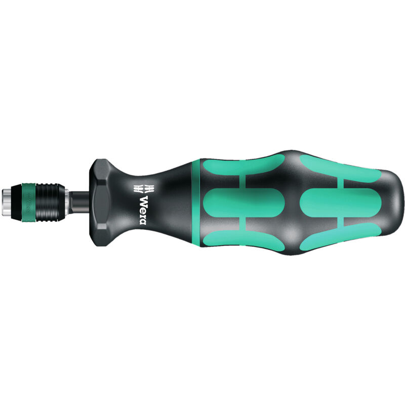 Impugnatura Kraftform per la trasmissione senza sforzo dei momenti torcenti necessari. Con attacco a cambio rapido Rapidaptor per bit da 1/4 pollice con codolo C 6,3 ed E 6,3. La coppia torcente può essere impostata mediante uno strumento di controllo della coppia (n. art. 654300 − 654460) e una bussola esagonale apertura 7 (o 10 per la Dim. 600). I giraviti sono preimpostati di fabbrica sul valore di coppia solitamente più utilizzato. Funzione: Al raggiungimento della coppia impostata, il giravite rilascia un segnale sonoro e tattile. Il momento torcente non è limitato. Norma: Geprüft nach DIN EN ISO 6789. Nota: La precisione di misurazione garantita della coppia è possibile a partire dal campo di coppia tarato secondo DIN EN ISO 6789. Raccordo ad accoppiamento libero Rapidaptor disponibile tramite il nostro eShop (n. art. 675035 Dim. 6,3F). Dati tecnici Tipo di prodotto giraviti dinamometrici Metrologia meccanico Campo di coppia, cN·m 120 - 300 Tipo di collegamento Attacco per bit