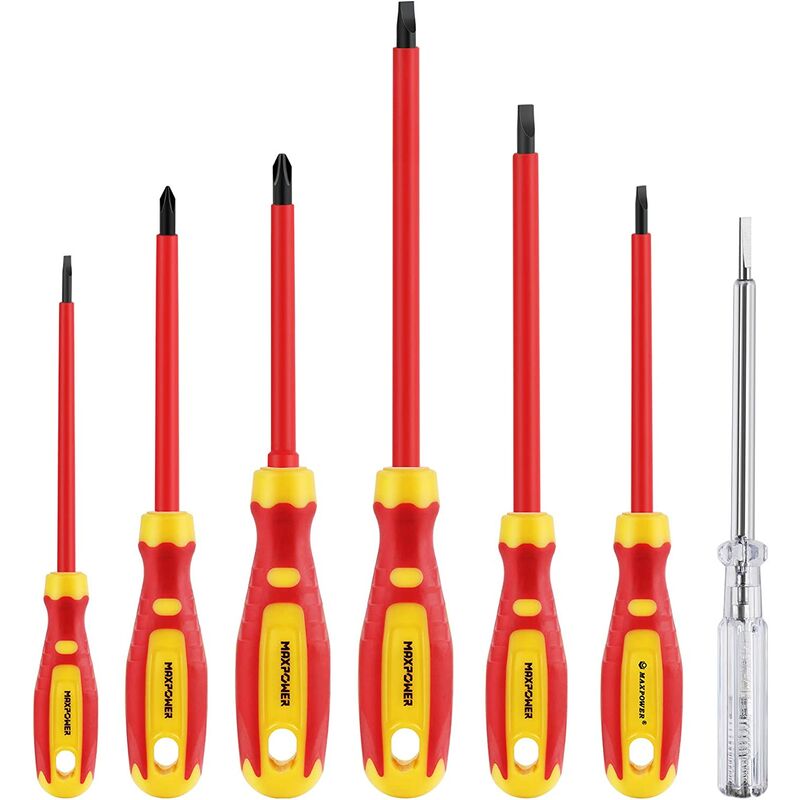 Include set di cacciaviti - - Cacciavite a testa piatta: #SL3 (100mm), #SL4 (100mm), #SL5.5 (125mm) e #SL6.5 (150mm). Cacciavite Phillips - Cacciaviti #PH1 (100mm) e #PH2 (100mm). Tester (AC 100V-500V) - # SL4 (190mm). Il tester di fase ha un campo di misura da 100 V CA a 500 V CA. 【Materiale】 - L'impugnatura di questo set di cacciaviti isolati è realizzata in acciaio CR-Mo trattato termicamente di alta qualità. Parte dell'impugnatura è impregnata di isolamento per renderla isolata e comoda da impugnare. Gestire le etichette per trovare e ordinare facilmente gli strumenti. 【Punte per cacciavite magnetico】 - Le punte per cacciavite sono realizzate in fosfato nero, magnetiche (possono afferrare piccole viti) e appositamente temprate, molto resistenti. Inoltre, è magnetico, quindi puoi lavorare con sicurezza. 【Utilizzo】 - Ottimo set di cacciaviti isolati per tutti i tipi di uso domestico, garage e officina. Ideale per attività elettriche e automobilistiche di precisione in cui fili e