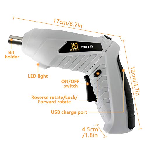 Cacciavite Elettrico 3.5NM Set di cacciaviti elettrici ricaricabili a mano con luce LED 17 pezzi Inserti driver 6 pezzi Punte trapano Cavo di ricarica USB 3,6 V 1300 mAh progettato per uso domestico