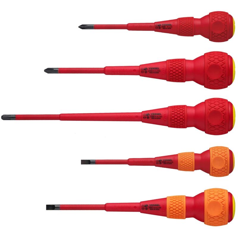 Design ergonomico unico per ridurre l'affaticamento. Versioni isolate: doppia protezione rossa-giallo per 100% di sicurezza. Punta magnetizzata. La forma dell'impronta è sagomata sulla parte superiore del manico.