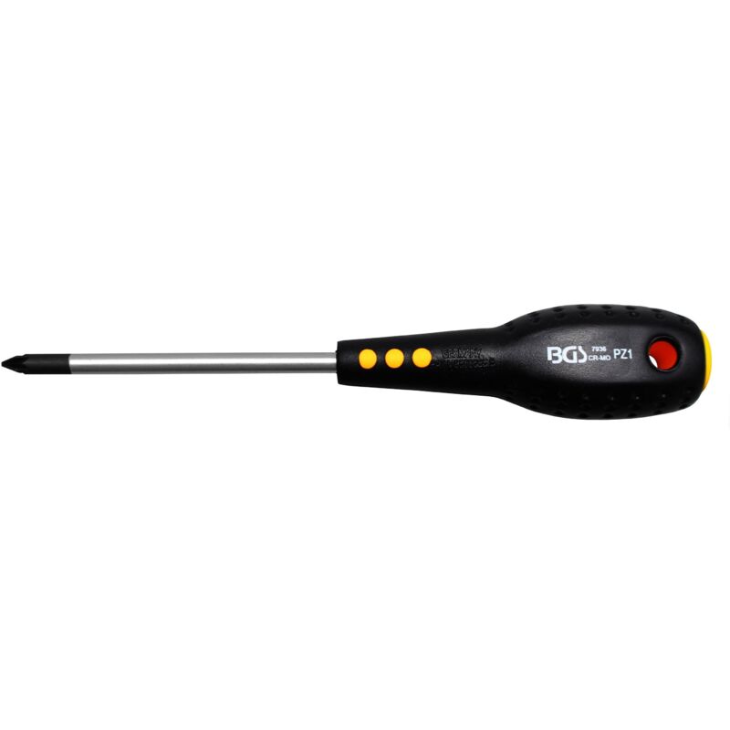 Con punte nere Manico in gomma nera Profilo di uscita Kreuzschlitz (PZ) Dimensione del profilo di uscita PZ1 Finitura della superficie Verchromt Peso del tessuto 0.06 Lunghezza della lama 80 mm Dimensioni dell'imballaggio 1 Peso lordo 60 g Materiale (F) Chrom-Vanadium-Stahl