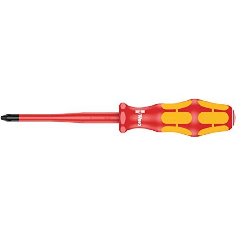 Con impugnatura ergonomica a forma di forza multicomponente con protezione roll-off · con zone di presa rigida per alta velocità di lavoro e zone di presa morbida per una trasmissione ad alta coppia · fabbricati secondo IEC 60900 · testato a pezzi a 10000 volt in un bagno d'acqua · Lama in acciaio al molibdeno-vanadio ad alta lega · con punta laser · morde saldamente nella testa della vite · sistema di controllo delle dimensioni indelebile all'estremità della maniglia · Lame isolate