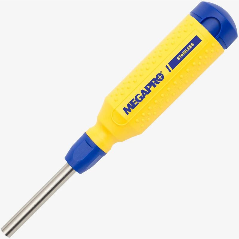 Il cacciavite Megapro Multi-Bit in acciaio inossidabile è ideale per chi vive in climi umidi e/o lavora in ambienti marini. Questo cacciavite è dotato di un albero in acciaio inossidabile, di punte ENP inossidabili e di tutta la tecnologia originale brevettata che rende piacevole l'utilizzo di Megapro. Set di punte Phillips 0-3 ENP Phillips 1-2 ENP Pozi 0-3 ENP Pozi 1-2 ENP Schlitz 4-6 ENP Torx 20-25 ENP Torx 27-30 ENP Caratteristiche Ausziehbare Bitkartushe, Palm-Saver Cap™, Triax® Handle, EZ Guide Collar, Edelstahlschaft, ENP (Electroless Nickle-plated) Bits Peso del tessuto 0,227 Dimensione in mm 22.20 × 3.56 × 3.56 cm Dimensioni dell'imballaggio 1.0