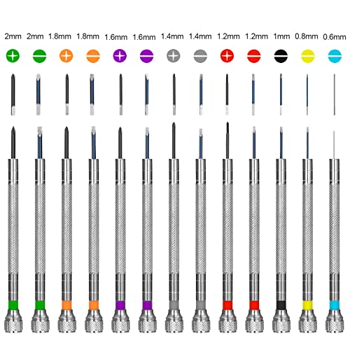 Cacciavite per Orologiaio Cacciaviti di Precisione per Occhiali 0.6-2.0 mm Giraviti Strumenti per Riparazione Elettronica Gioiellieri Smartphone 13 Pezzi