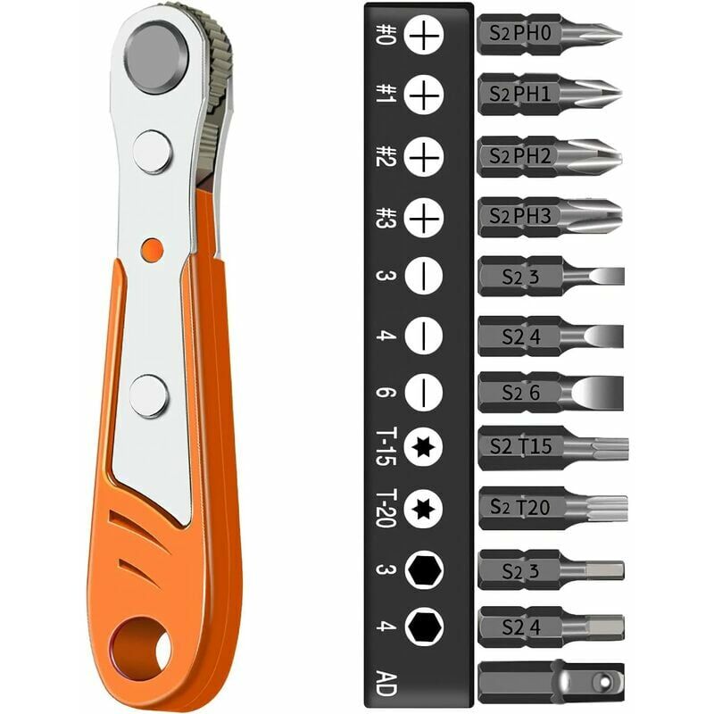 Struttura squisita: questo cacciavite è dotato di un sistema a cricchetto reversibile a 16 denti per garantire un cricchetto bidirezionale per una calzata precisa e la clip magnetica all'interno del portapunte aiuta a tenere in posizione la punta inserita. < p>Presa comoda: l'impugnatura adotta un design ergonomico e antiscivolo, che offre una presa comoda e riduce l'affaticamento della mano causato da un uso prolungato. Disponibile in aree ristrette: questo cacciavite è facile da stringere e allentare il bersaglio con una coppia sufficiente, particolarmente adatto per l'uso in angoli, lati o angoli a forma di U. altri luoghi stretti. Facile da usare e trasportare: grazie alla sua impugnatura compatta lunga 10,2 cm e Con uno spessore di 2,5 cm, l'utensile manuale può essere utilizzato anche negli spazi più ristretti, soprattutto in luoghi difficili come angoli a forma di U, superfici laterali, ecc. Il tradizionale cacciavite a cricchetto o il cacciavite corto possono essere troppo