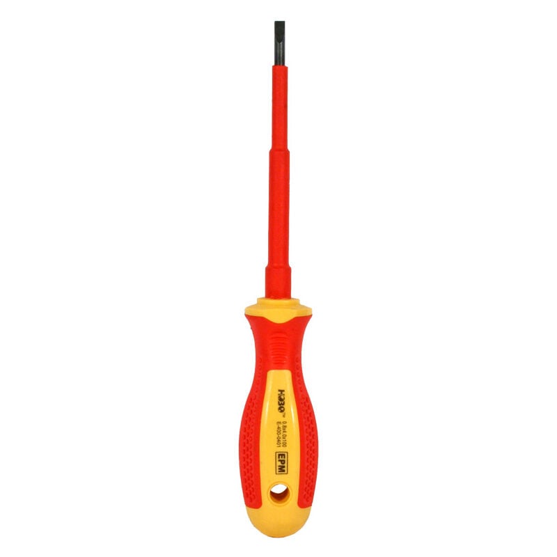 Dati tecnici Produttore: EPM Codice produttore: E-400-0402 Tipo di cacciavite: piatto Misura [mm]: 5.5 Lunghezza lama [mm]: 125 Lunghezza impugnatura [mm]: 101 Cacciavite HOBO FLAT isolato 1000 V 125 mm Realizzato in alta qualità, acciaio legato temprato, punta della lama annerita. Per lavorare con tensioni fino a 1000 V. L'impugnatura ergonomica con superficie antiscivolo garantisce comfort e sicurezza durante il lavoro. Il prodotto soddisfa i requisiti della norma DIN EN 60900 (VDE 0682-). 201): 2013-04 EN 60900: 2012. Testato dall'istituto di prova e certificazione VDE** Foto chiare