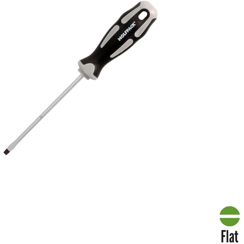 Cacciavite piatto stampato DIN5265 - Misura (punta/spessore/gambo): 0,8 x Ø 4,0 x 100 mm. - Lunghezza totale: 190 mm. - Punta piatta stampata. - Il cacciavite è prodotto secondo la norma DIN5265. - Manico con finitura piatta per poter