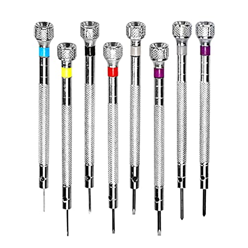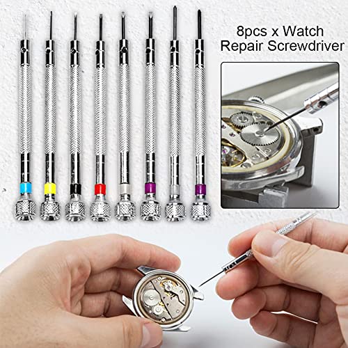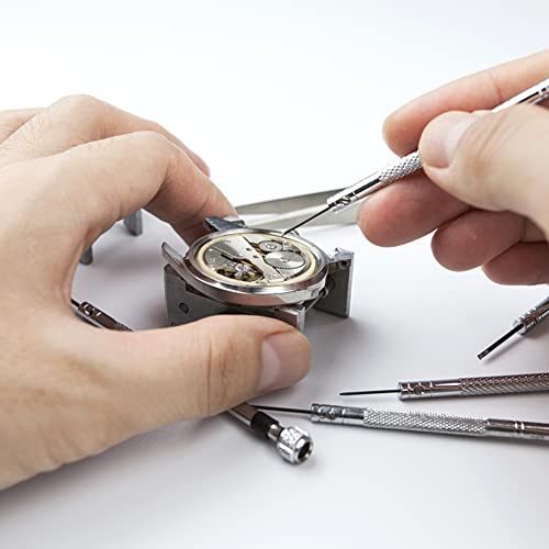 Impugnatura antiscivolo: il cacciavite a microprecisione viene utilizzato per la riparazione di orologi, la sostituzione di batterie per orologi e lo smontaggio della catena a vite del cinturino e può aiutarti a riparare l'orologio in modo più semplice e veloce. Il design del manico antiscivolo è