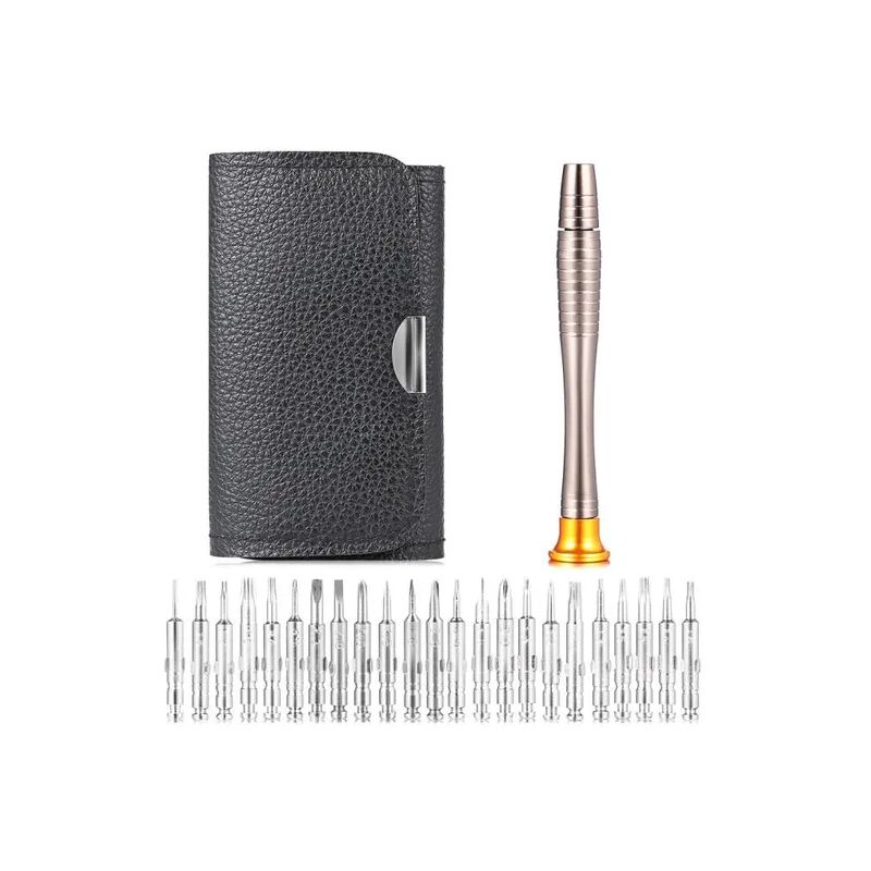 Panoramica del prodotto:: Specifiche: Colore: argento Materiali: acciaio Peso imballato:0.106kg Caratteristiche: 1. 24 tipi di cacciaviti specifici, ce n'è sempre uno per soddisfare le tue esigenze 2. Portafoglio portatile, leggero e portatile 3. Interno con design sospeso, facile da trasportare e riporre, evita di perdere 4.Realizzato in acciaio al cromo vanadio di fascia alta la cui durezza raggiunge HRC52 - 60, durevole. 5.Impugnatura dal design ergonomico, antiscivolo e traspirante< /li> 6. Ampiamente utilizzato in telefoni cellulari, fotocamere, tablet, computer, occhiali e altre apparecchiature di manutenzione. Il pacchetto include: 1 X cacciavite