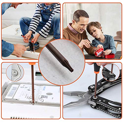 [Dimensioni cacciavite]: contiene 1,5 mm, 2,0 mm, 3 mm cacciaviti Philllips, 1,5 mm, 2,0 mm e 2,5 mm, cacciavite Torx T4 T5, cacciavite di sicurezza T6 T8 con un cavo nelle punte, 1 pezzo per ogni dimensione. La lunghezza del cacciavite è di circa 145 mm.