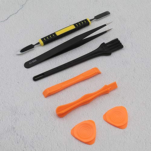 [Contenuto della confezione: 10 cacciaviti, 1 pinzetta ESD a 12 punte, 1 spudger in metallo, 4 spudger in plastica, 1 spazzola per la pulizia, 17 pezzi in totale.