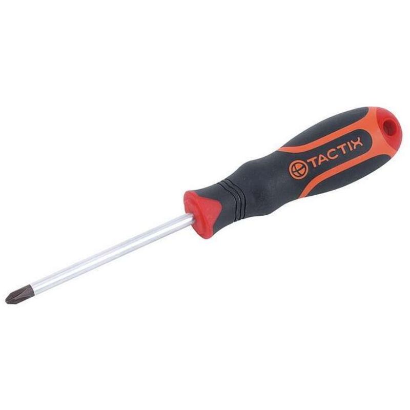 TACTIX - CACCIAVITE PROFESSIONALE A CROCE PZ2 X 125MM Caratteristiche: - Manico bicomponente a dui colori: nero e arancione - Presa salda antiscivolo - Lama Phillips 2x125mm