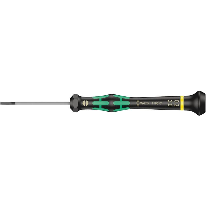 Dettagli tecnici Dimensione del prodotto, lunghezza 147 mm Tipo prodotto Cacciavite a taglio Cacciavite a intaglio per elettronica 2035, 0,30 x 2 x 50 mm Micro cacciavite Wera di alta qualità per avvitamenti meccanici di precisione. Sostenendo la mano sul cappuccio rotante e la zona di rotazione rapida sotto il cappuccio rotante è possibile eseguire un avvitamento veloce e fulmineo. Non è più necessario tanto tempo. Zone di presa con inserti morbidi integrati per trasmettere forze di avvitamento e svitamento più elevate. Zona di precisione per l'angolo di rotazione corretto durante i lavori di regolazione. La punta Wera Black Point offre una precisione perfetta e una protezione anticorrosione ottimizzata. Testo tradotto automaticamente. Incluso nella consegna null Requisiti di sistema null