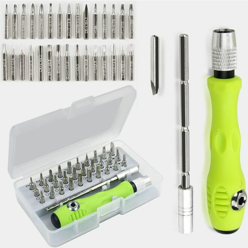 32 in un set di cacciaviti a cricchetto magnetico, utilizzato per serrare e allentare varie viti. Molto adatto per lavorare su apparecchiature ordinarie, condizionatori d'aria utili, lavatrici, lavastoviglie, frigoriferi, computer, televisori, ecc. Impugnatura ergonomica con inserti soft grip in grado di fornire maggiore comfort e resistenza ottimale. Punta per cacciavite professionale da 30 pezzi con alta precisione e durezza fino a 60HRC, più forte e più durevole delle parti in acciaio CR-V. Cassetta degli attrezzi portatile professionale, ogni articolo è riposto in modo sicuro e protetto sul telaio fisso e contrassegnato con contrassegni di dimensioni, facile da identificare e organizzare. Ciascuno di essi è realizzato in acciaio al cromo vanadio ad alta durezza rinforzato da un processo di trattamento termico e la superficie è rivestita con un rivestimento resistente alla corrosione per una resistenza superiore. Numero di pezzi consegnati: 32 luckymeet