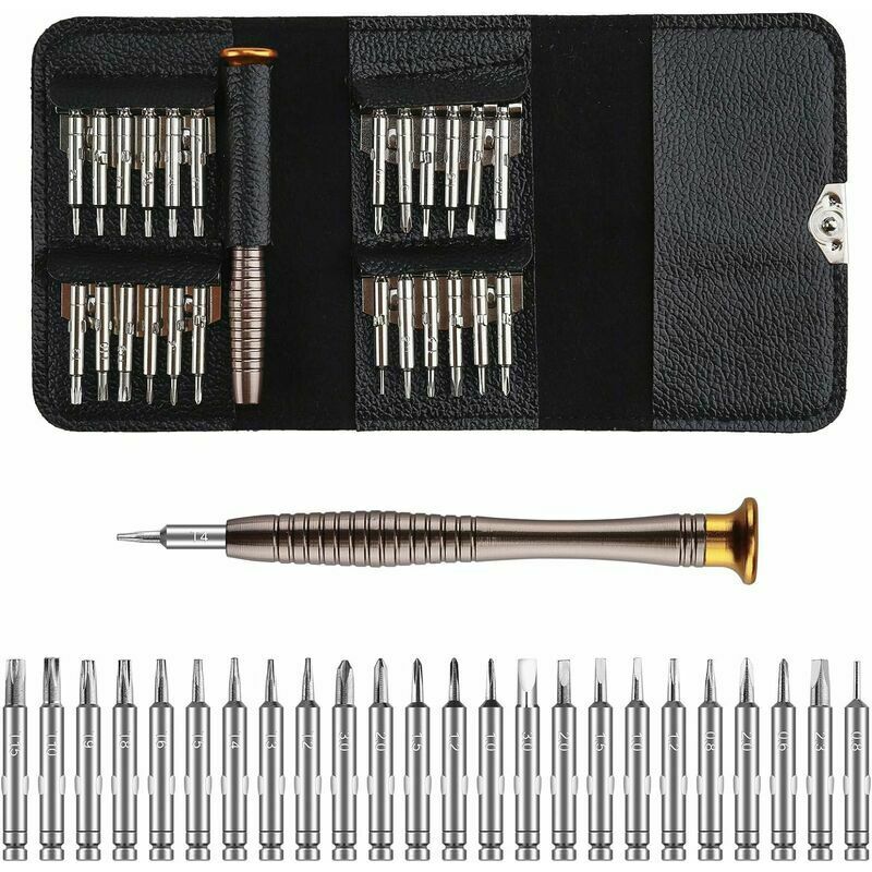 Informazioni su questo prodotto: Design unico: il manico in lega, leggero e resistente e più comodo da usare con il design magnetico. Filettatura superficiale antiscivolo, il design del cuscinetto di coda per aiutarti a rilasciare viti più strette. Ampia applicazione: il set di cacciaviti è uno strumento perfetto per tutte le riparazioni meccaniche di precisione. Strumenti di riparazione ideali per tablet, laptop, PC, smartphone, orologi, occhiali da sole, fotocamera PS4/Xbox e altri dispositivi elettronici. Facili da trasportare: questi cacciaviti di diverse dimensioni sono forniti in una pratica custodia in pelle, a scatto si chiude per mantenere tutti gli strumenti al sicuro e abbastanza piccolo da poter essere portato con te ovunque o riposto praticamente ovunque. Set di 25 cacciaviti di precisione in 1: cacciavite a stella a cinque punte: 0,8 1,2, cacciavite Torx: T2 T3 T4 T5 T6 T8 T9 T10 T15, cacciavite a triangolo: 2.3, cacciavite a Y: 0.6 2.0, cacciavite Phillips: 1.0 1.2 1.5