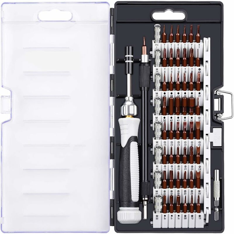 Descrizione Questo coperchio combinato cacciavite 60 in 1 copre tutti i tipi di teste di lotto sul mercato. È potente e un singolo set può adattarsi allo smontaggio e all'installazione quotidiani. Materiale migliorato. La durezza e la durata del materiale S2 sono migliorate di un livello, non preoccuparti più di scivolare o addirittura di usurare ruotando la vite! Sedile in alluminio 4mm - con presa magnetica, maniglie in gomma e prolunga dell'albero ball Flessibile - inserire punti difficili da raggiungere 60mm lunghezza albero - funge anche da maniglia a T per adattatore torque 1/4 extra - utilizzare le punte da 4 mm di questo kit nei driver standard da 1/4 Specificazione: Materiale: Acciaio S2 Fonte di alimentazione: alimentato a mano Headtop: Hex/ Flathead/ Nut/ Torx/ Torx Security/ Phillips/ Pentalobe/ Square/ Tri-point/ Triangle/ U Type/ SIM Eject size/ Cross Bits pilot nelle seguenti dimensioni: 11x dimensioni esagonali 0.7 0.9 1.3 1.5 2.0 2.5 3.0 4.0 4.5 5.0 6.0 mm 7x Flathead