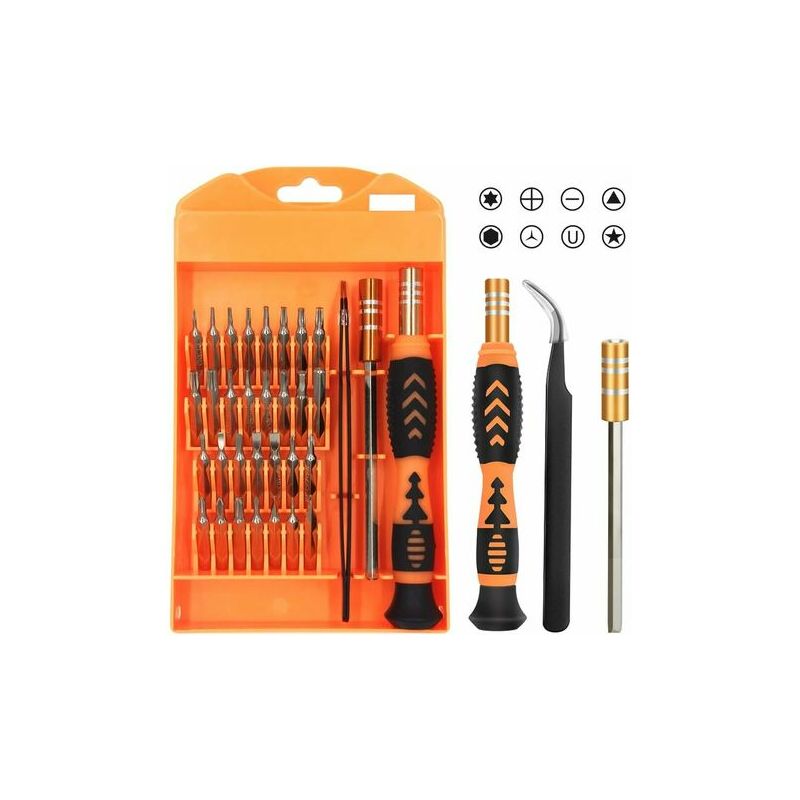 Materiale delle punte per cacciavite ad alta precisione: acciaio al cromo vanadio di alta qualità. Tutti i bit sono lavorati con precisione e hanno una buona durata. Impugnatura comoda La parte superiore dell'impugnatura è magnetica, il lato è antiscivolo e il coperchio posteriore può ruotare liberamente. Questa presa è ergonomica e riduce efficacemente l'affaticamento della mano. Asta di prolunga e pinzette L'asta di prolunga rigida da 100 mm ti aiuterà ad allungare la presa, è molto comodo entrare in stretto posti, come riparare l'interno di un computer host. Le pinzette antistatiche da 115 mm possono facilmente raccogliere piccole parti dal circuito stampato. Set di cacciaviti portatile Dimensioni del palmo, design compatto, puoi usarlo appeso al tuo portautensili o tenerlo in un cassetto a casa o in ufficio. Scenari applicativi Adatto per riparare occhiali/telefoni cellulari/PC/tablet/orologi/fotocamere/giocattoli/piccoli elettrodomestici.