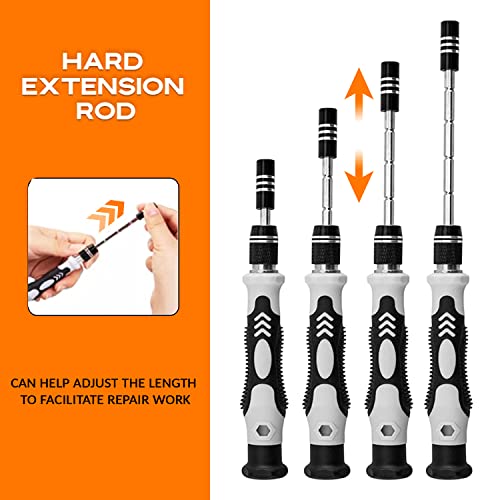 MULTIFUNZIONALE Il nostro kit cacciaviti precisione è dotato di un set di estrattori di viti danneggiate per risolvere il problema delle viti a testa tonda. Questo set è solo per trapani elettrici e deve avere una bassa velocità durante l'uso. Viene aggiunta una mini-chiave per risolvere meglio il problema dello smontaggio.