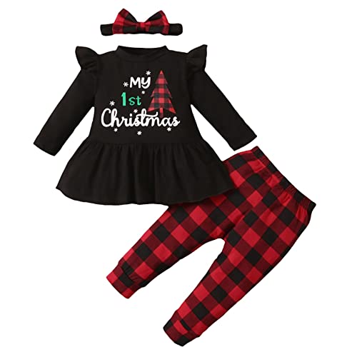 Cachi Completino Neonato Uni per Natale Vestiti Floreali della Ragazza Appena Nata Pagliaccetto Stampato della Lettera Della Manica Dell'increspatura di Bowknot + Pantaloni Reticolo+ Fascia 0-18 Mesi