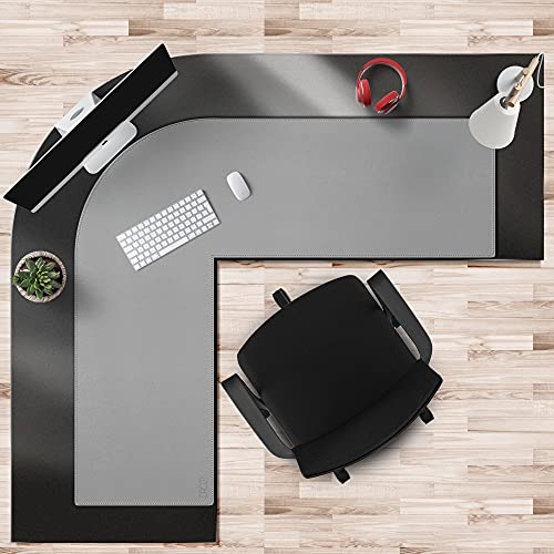 Cacoy Tappetino da scrivania a forma di L in pelle PU, Tappetino da scrivania per Computer (130+140) x40cm Tappetino per mouse Grande per Casa e Ufficio, Grigio