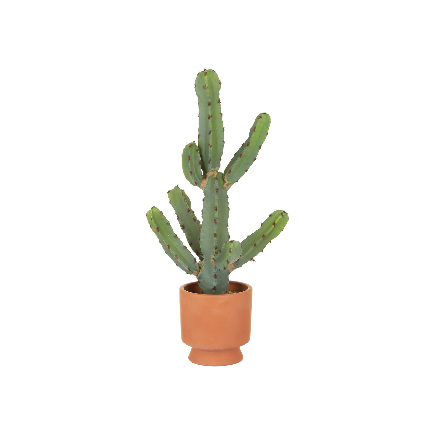 Il vaso in terracotta non è solo una decorazione, ma un vero complemento d'arredo! La terracotta, molto amata per il suo aspetto naturale, trova spazio sia in case rustiche e country per dare continuità di stile, sia in ambienti moderni e minimali per aggiungere ricercatezza. La sua caratteristica porosità rende spesso la colorazione non uniforme, ma proprio qui sta il suo fascino: il design irregolare è perfetto per ricreare uno stile vintage e country e un'atmosfera rilassante e accogliente! Sarà un elemento d'arredo affascinante unito al cactus, seppur finto, di cui è completo. La scelta perfetta per chi ama le piante ma non ha esattamente il pollice verde. Dimensioni: 19x19xh49 cm.