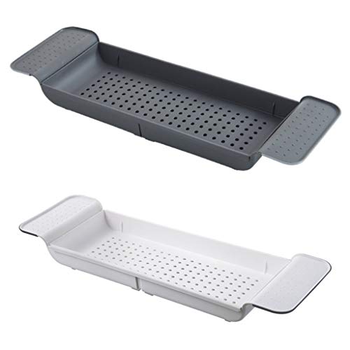 CADANIA Vasca Vasca da Bagno Mensola Doccia Caddy Portaoggetti Estensibile Vassoio portaoggetti sopra Il Bagno Organizer Multifunzionale per Bagno Doccia Bianco