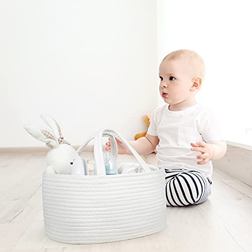 CESTINO MORBIDO PER PRODOTTI NEONATI - Il carrello per pannolini We Care Vida Baby Rope è portatile e abbastanza versatile per tutte le cose per bambini: giocattoli per bambini, pannolini, vestiti per bambini, salviette per bambini, bavaglini, tutine, giocattoli per bambini, pannolini di stoffa, fasciatoi, medicine, panni per rutti e altro ancora! Abbastanza grande per dozzine di pannolini e la maggior parte dei distributori di salviette.