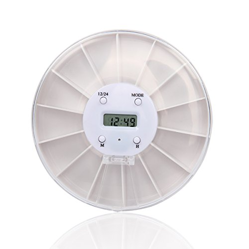 Cadillaps Digital LED Alarme Pillole 14 Scomparti Viaggio Le Pillole Compresse Box Dosatore Medicinale 10 * 2 cm, Plastica, Bianco, 10 * 2 cm