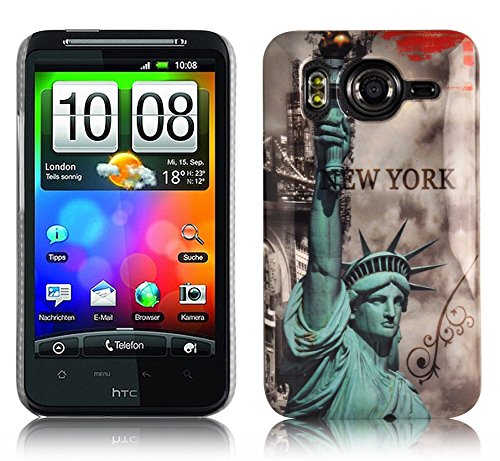Cadorabo - TPU Hard Cover per > HTC DESIRE HD < - Case Cover Involucro Bumper Accessorio in Design: NEW YORK - STATTUA-DELLA-LIBERTÀ