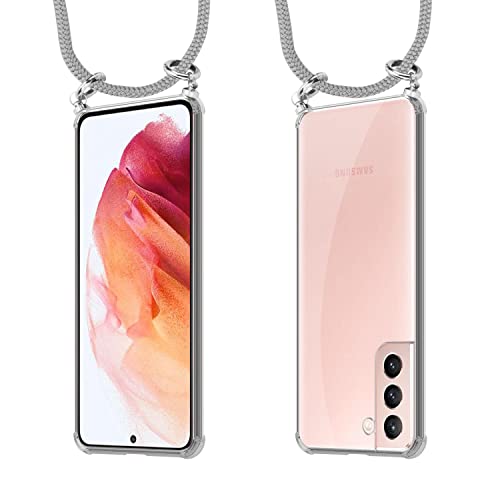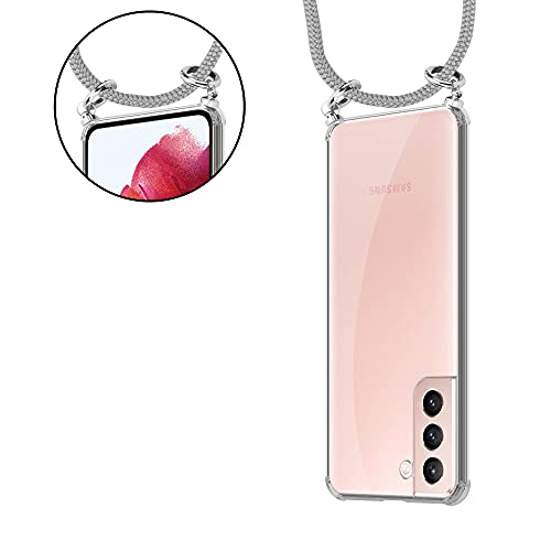 Cadorabo Custodia Collana compatibile con Samsung Galaxy S21 5G in GRIGIO ARGENTO Case a Tracolla - Cover Laccio per Il Collo in Silicone Trasparente con Anelli Argenti, Cordino e Borsello Rimovibile