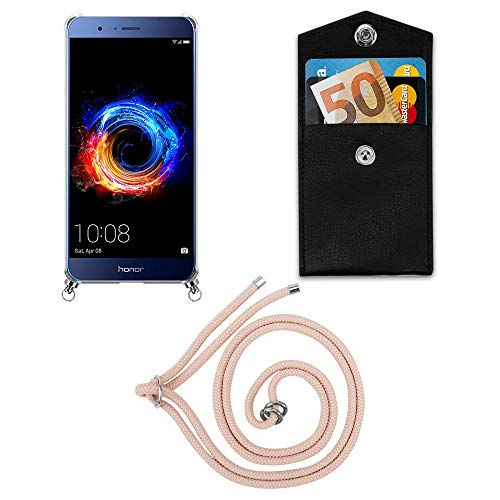 Cadorabo Custodia Collana per Honor 8 PRO in OR ROSATO A PERLA Case a Tracolla - Cover Laccio per Il Collo in Silicone Trasparente con Anelli Argenti, Cordino e Borsello Rimovibile