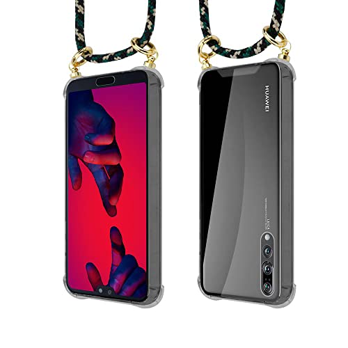Cadorabo Custodia Collana per Huawei P20 PRO in CAMOUFLAGE Case a Tracolla - Cover Laccio per Il Collo in Silicone Trasparente con Anelli Ori, Cordino e Borsello Rimovibile
