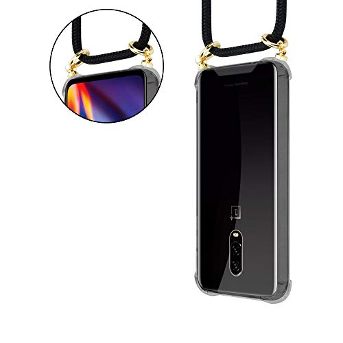 Cadorabo Custodia Collana per OnePlus 6T in Nero Case a Tracolla - Cover Laccio per Il Collo in Silicone Trasparente con Anelli Ori, Cordino e Borsello Rimovibile