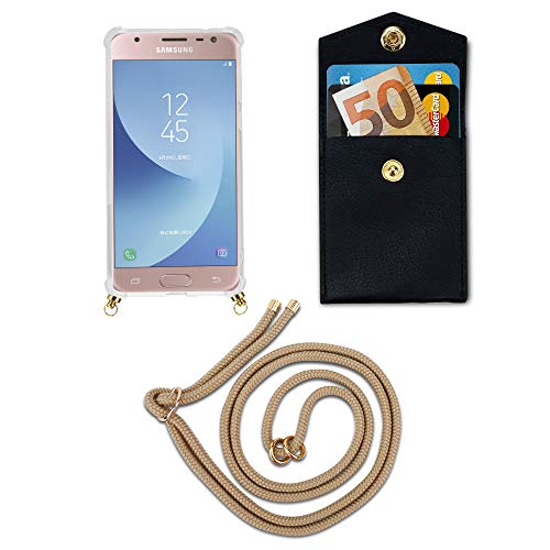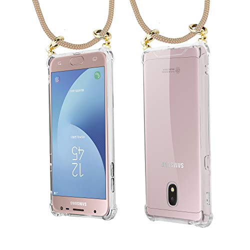 Cadorabo Custodia Collana per Samsung Galaxy J5 2017 in MARRONE BRILLANTE Case a Tracolla - Cover Laccio per Il Collo in Silicone Trasparente con Anelli Ori, Cordino e Borsello Rimovibile