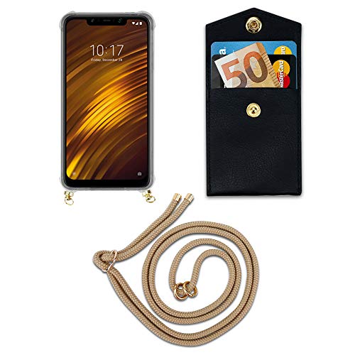 Cadorabo Custodia Collana per Xiaomi Pocophone F1 in Marrone Brillante Case a Tracolla - Cover Laccio per Il Collo in Silicone Trasparente con Anelli Ori, Cordino e Borsello Rimovibile