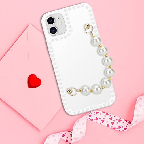 Cadorabo Custodia compatibile con Apple iPhone 11 in Bianco con perle - Coperchio protettivo in silicone TPU flessibile con catena da polso