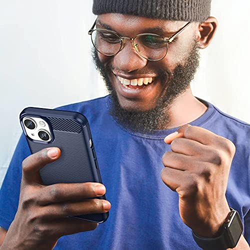 Cadorabo Custodia compatibile con Apple iPhone 14 in BRUSHED BLU - Coperchio protettivo in silicone TPU flessibile in look acciaio inossidabile-fibra di carbonio