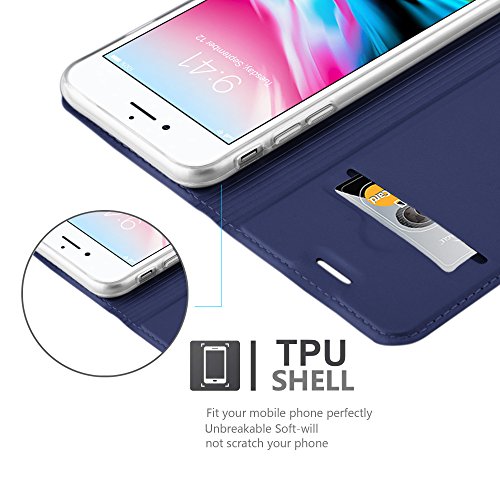 Cadorabo Custodia compatibile con Apple iPhone 7 / 7S / 8 / SE 2020 in classy blu scuro - Custodia protettiva con chiusura magnetica, funzione leggio e scomparto per carte di credito