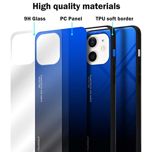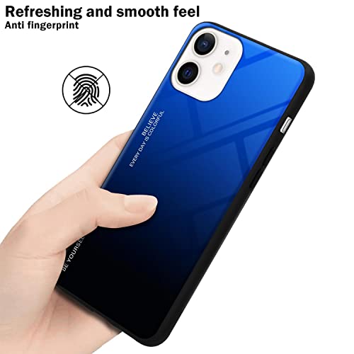 Cadorabo Custodia compatibile con Apple iPhone 12 MINI in BLU - NERO - Coperchio protettivo bicolore in silicone TPU e retro in vetro temperato
