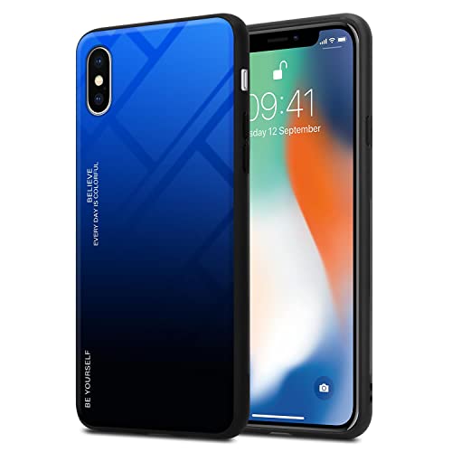 Cadorabo Custodia Compatibile con Apple iPhone X/XS in Blu - Nero - Coperchio Protettivo Bicolore in Silicone TPU e Retro in Vetro temperato