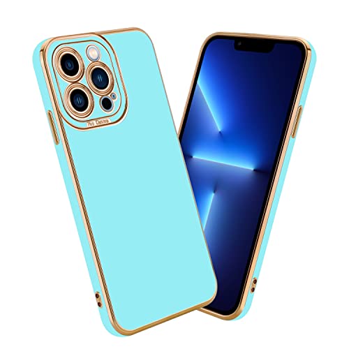 Cadorabo Custodia compatibile con Apple iPhone 13 PRO in Glossy Turchese - Oro Rosa - Coperchio protettivo in silicone TPU flessibile e con protezione per la fotocamera