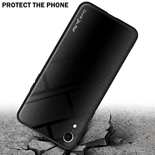 Cadorabo Custodia compatibile con Apple iPhone XR - Ottica a strisce in OPALE NERO - Coperchio protettivo in silicone TPU e retro in vetro temperato