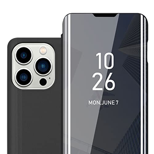 Cadorabo Custodia compatibile con Apple iPhone 14 PRO MAX in TORMALINA NERA - Clear View Specchio Coperchio protettivo con funzione di supporto Protezione a 360 gradi