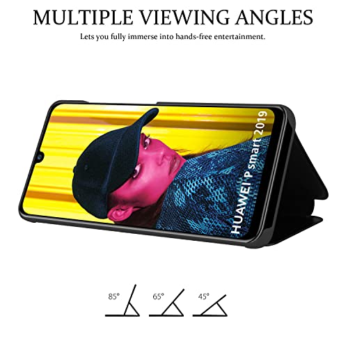 Cadorabo Custodia Compatibile con Honor 10 Lite/Huawei P Smart 2019 in TORMALINA Nera - Clear View Specchio Coperchio Protettivo con Funzione di Supporto Protezione a 360 Gradi