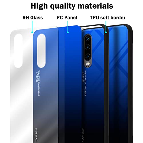 Cadorabo Custodia Compatibile con Huawei P30 in Blu, Nero, Custodia Protettiva Bicolore in Silicone TPU e Retro in Vetro temperato