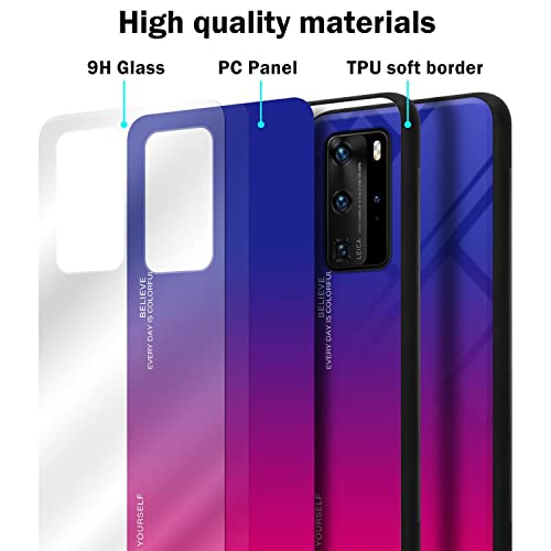 Cadorabo Custodia compatibile con Huawei P40 PRO / P40 PRO+ in VIOLA - ROSSO - Coperchio protettivo bicolore in silicone TPU e retro in vetro temperato