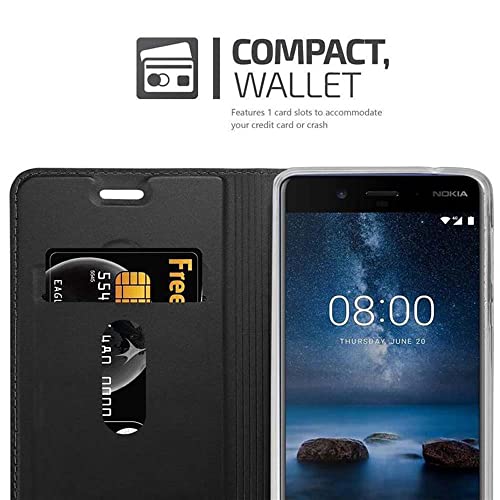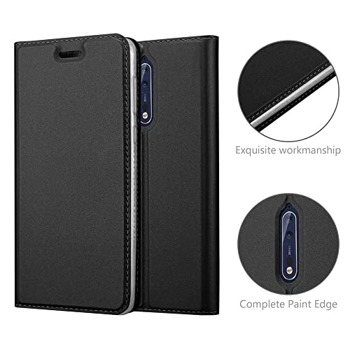 Cadorabo Custodia compatibile con Nokia 8 2017 in Classy, colore nero, con chiusura magnetica, funzione leggio e scomparto per carte di credito